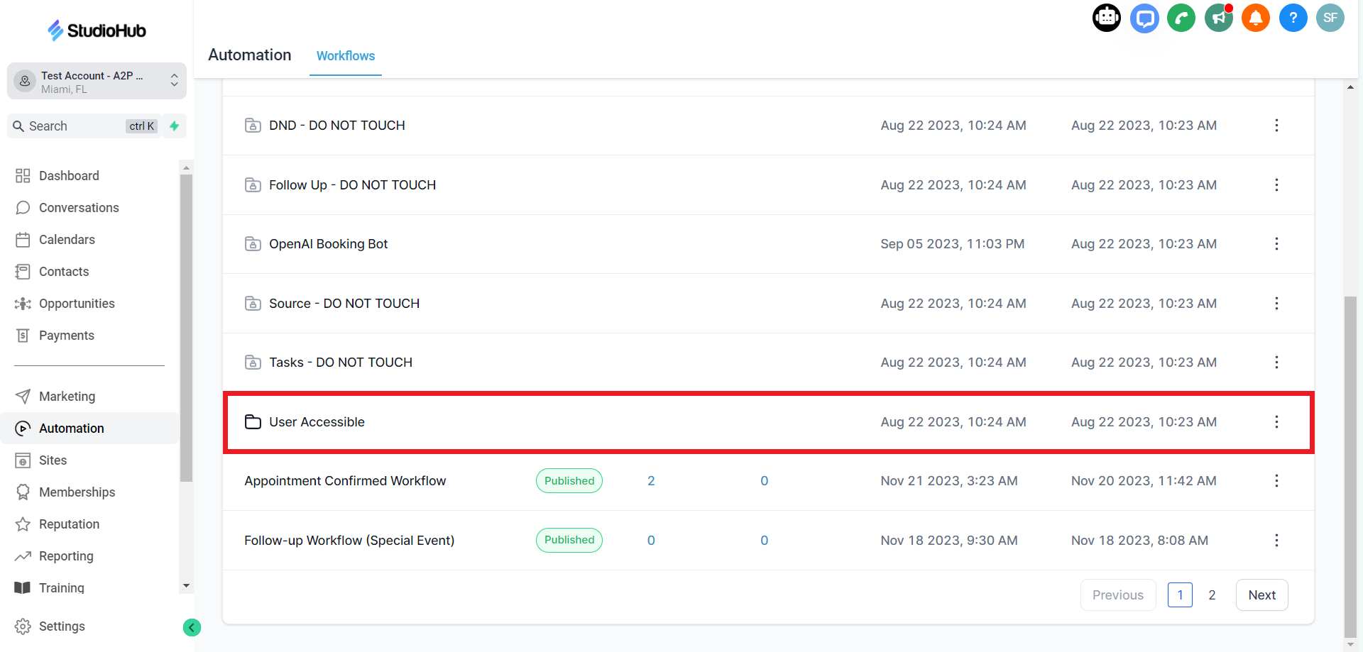 - Once you've clicked on "User Accessible", this will open a folder. Scroll down and go to the second page of the workflow list