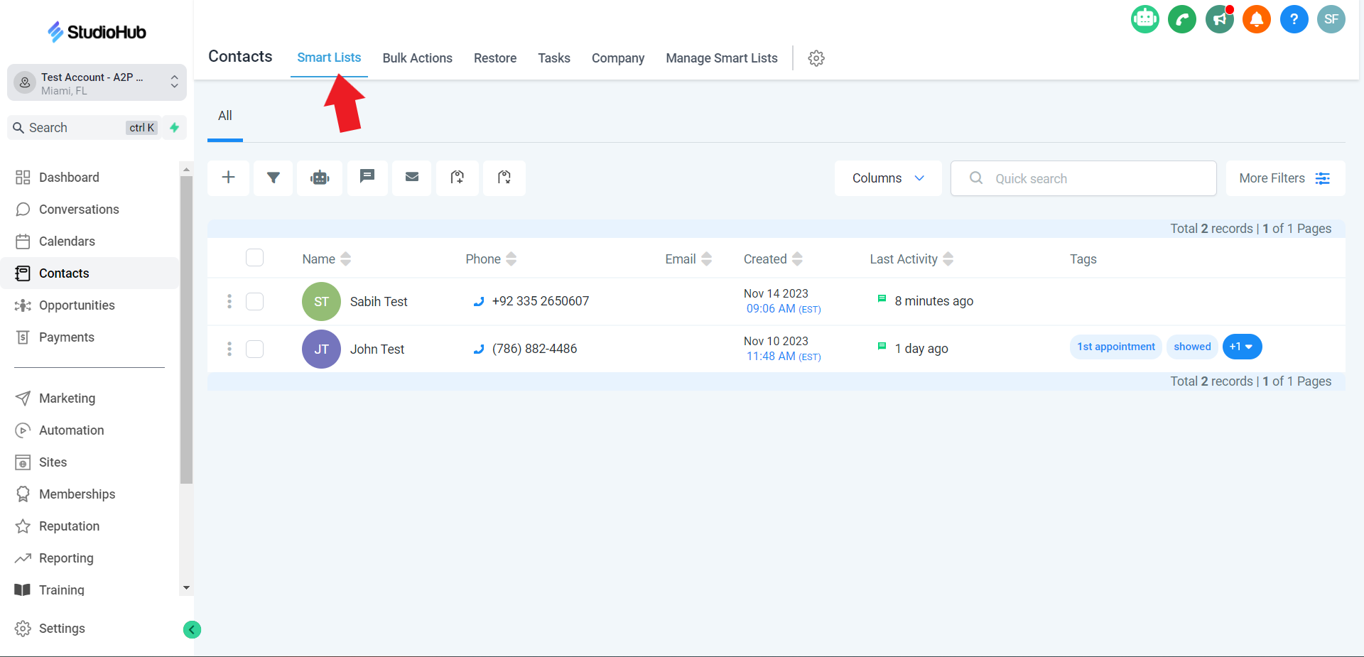 Step 1: Access Contact Smart Lists: