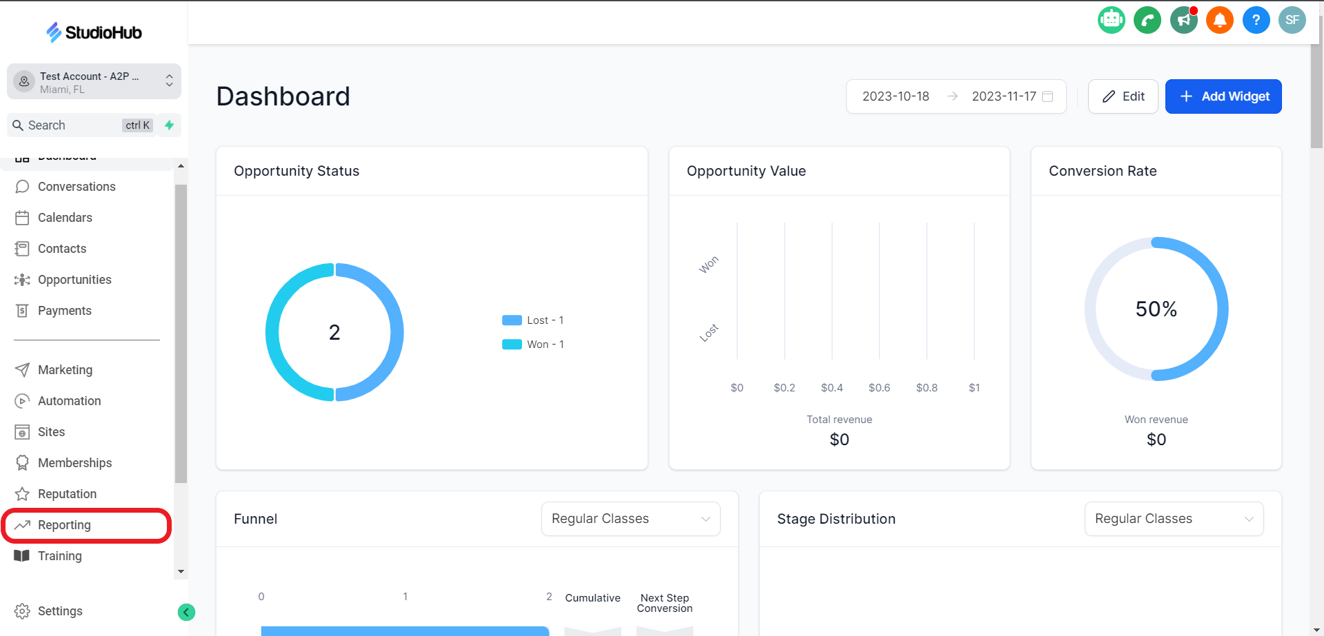 - Navigate to the "Reporting" section on the left-hand side menu.
