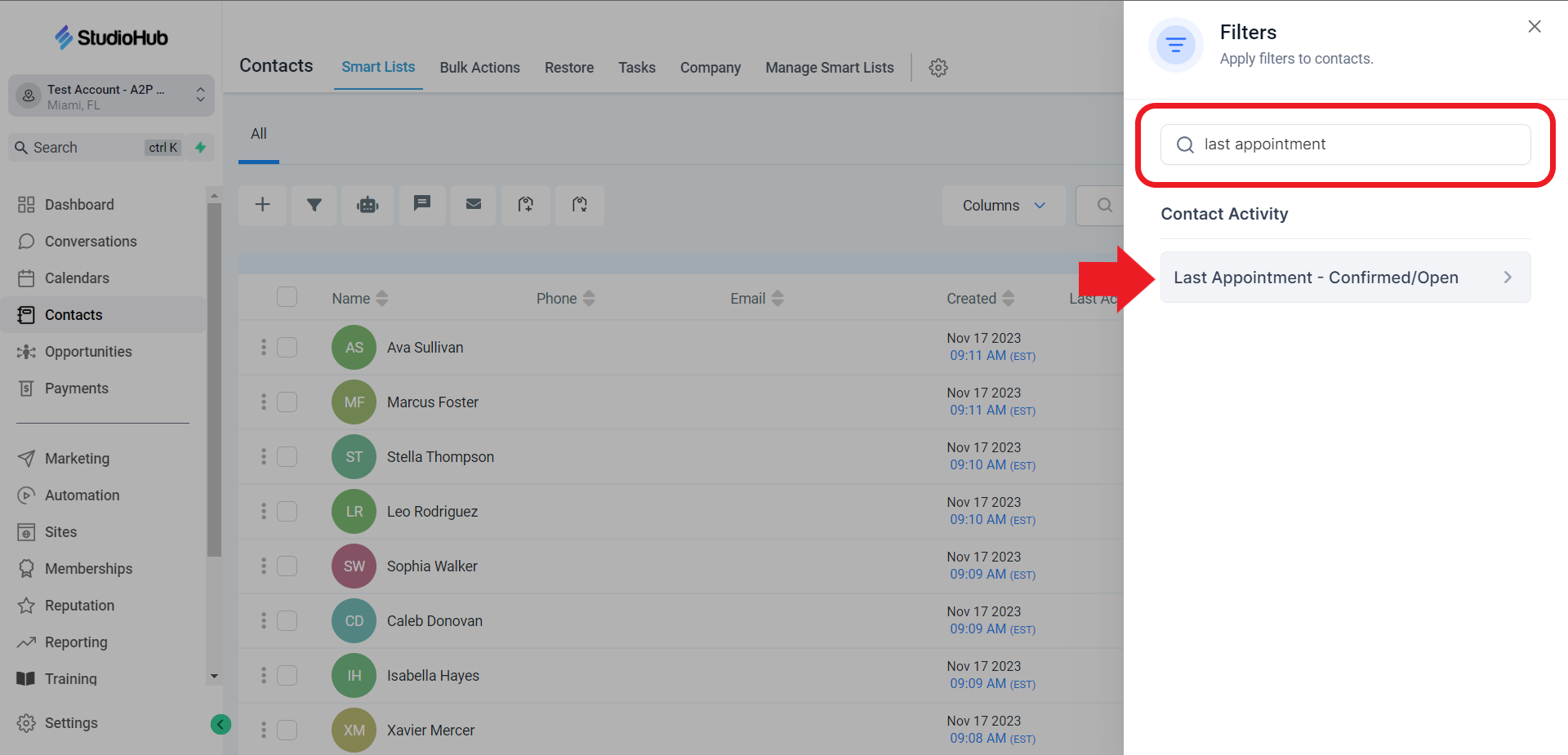 Now you know multiple ways to identify contacts who have appointments scheduled for a specific trial date using StudioHub. Whether you use the calendar, appointment list, reporting, or integrate with Google Calendar, these methods ensure you stay on top of upcoming appointments and are well-prepared for each trial.