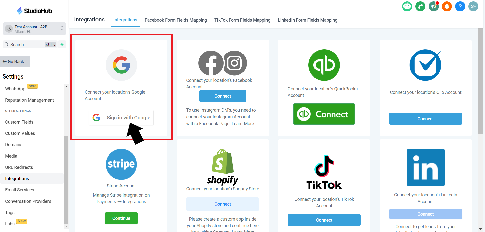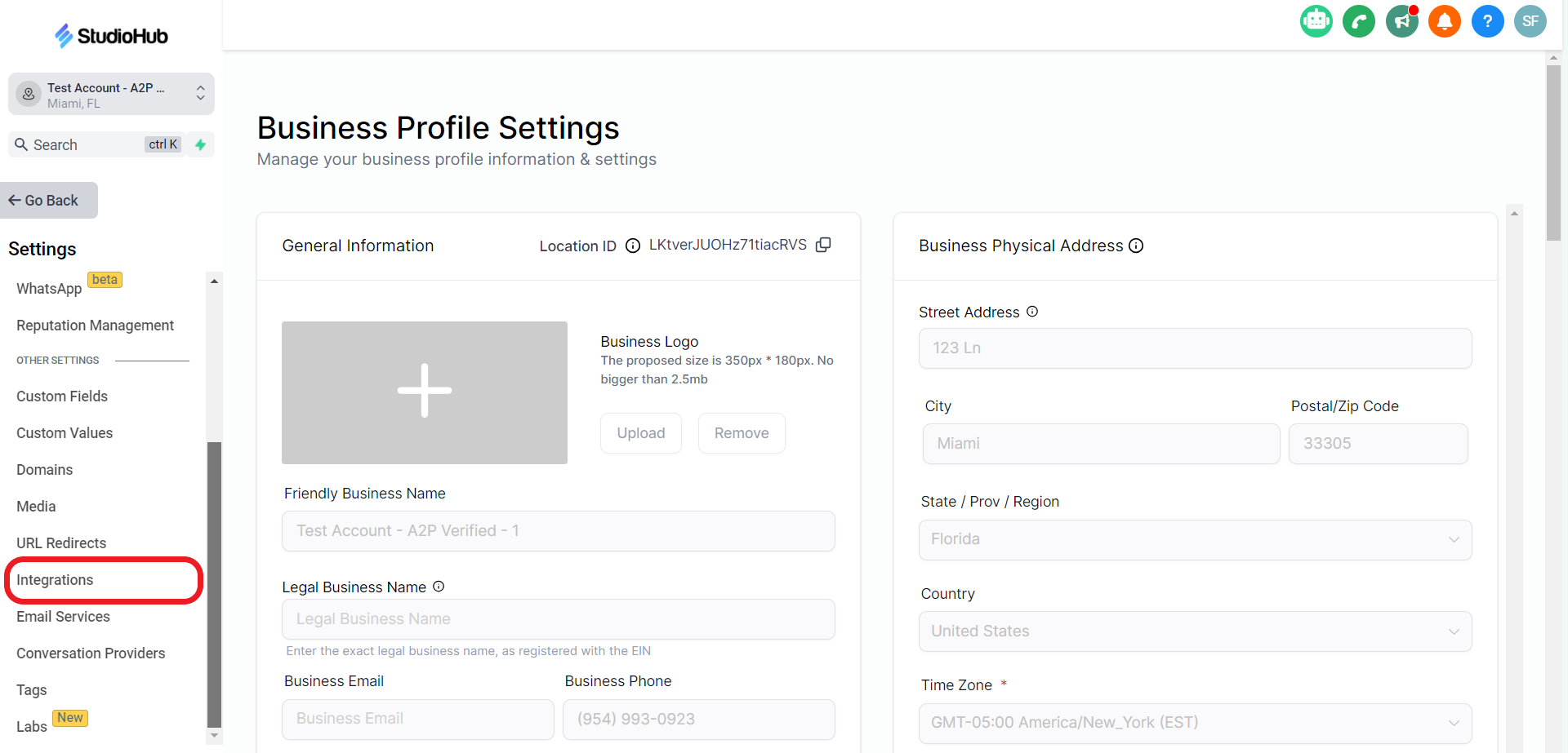 - On the left panel, scroll down and select the "Integrations" option