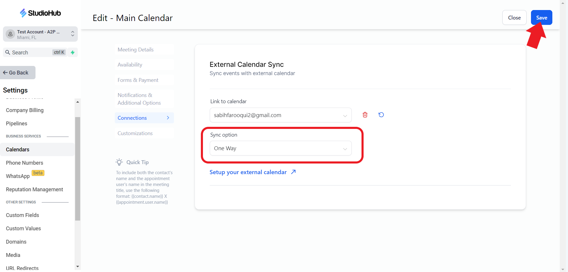 - Choose the calendar Sync option according to your preference. Click "Save" on the top once done