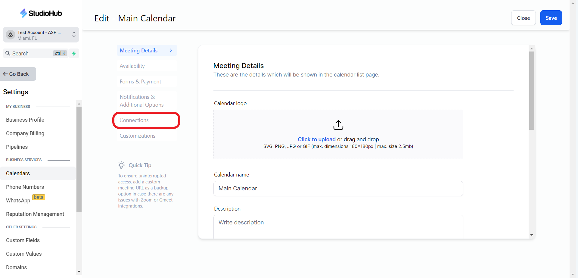 - Click on the "Connections" option