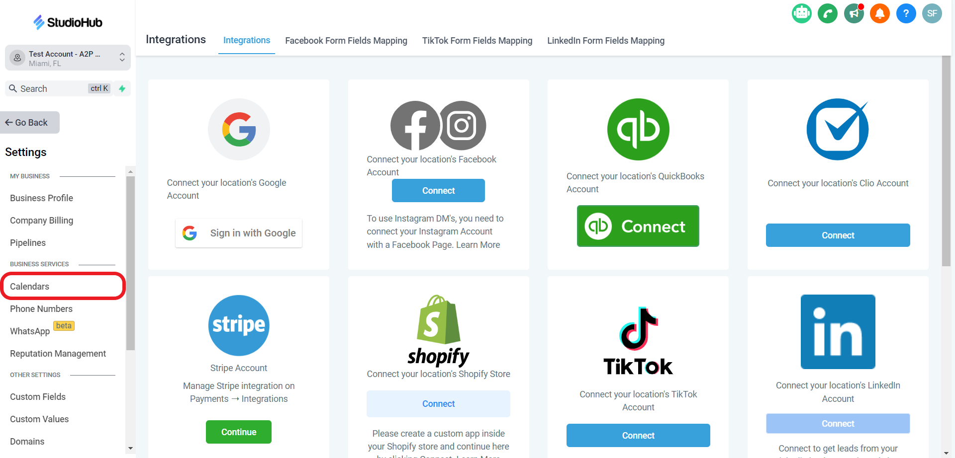 - In the "Settings" section, select the "Calendars" option