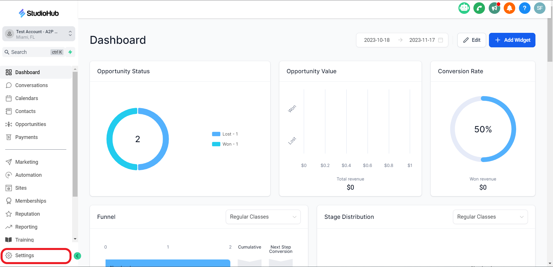 - Log in to your Studio Hub account. Click on the "Settings" option located in the menu.