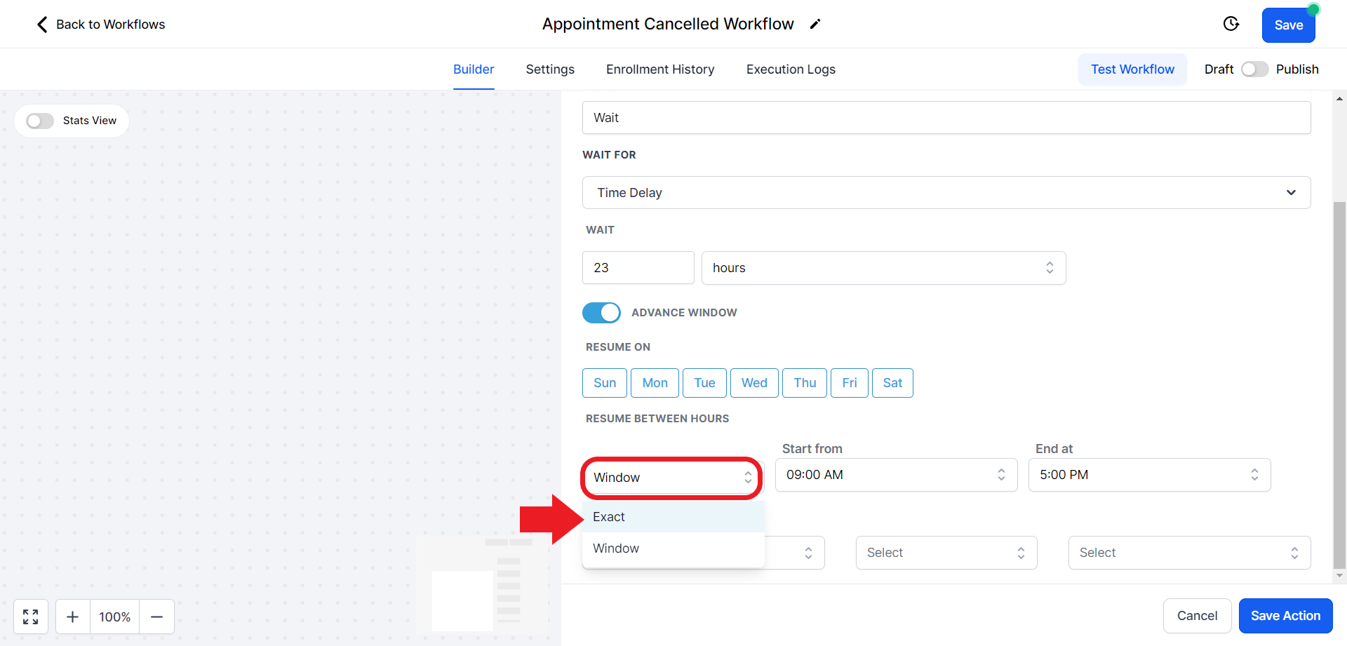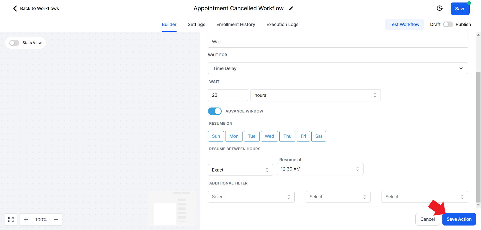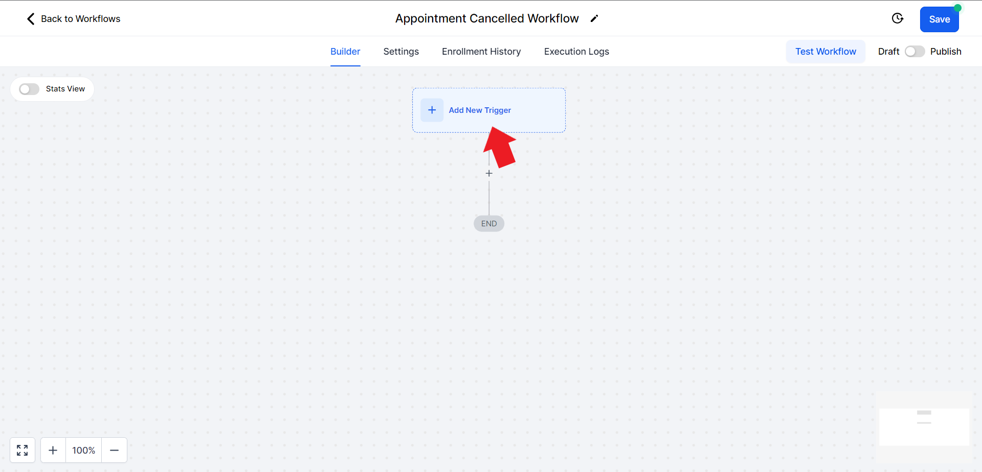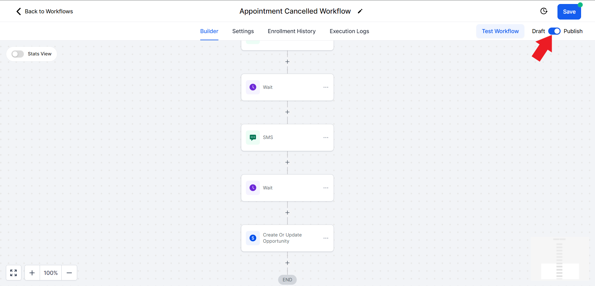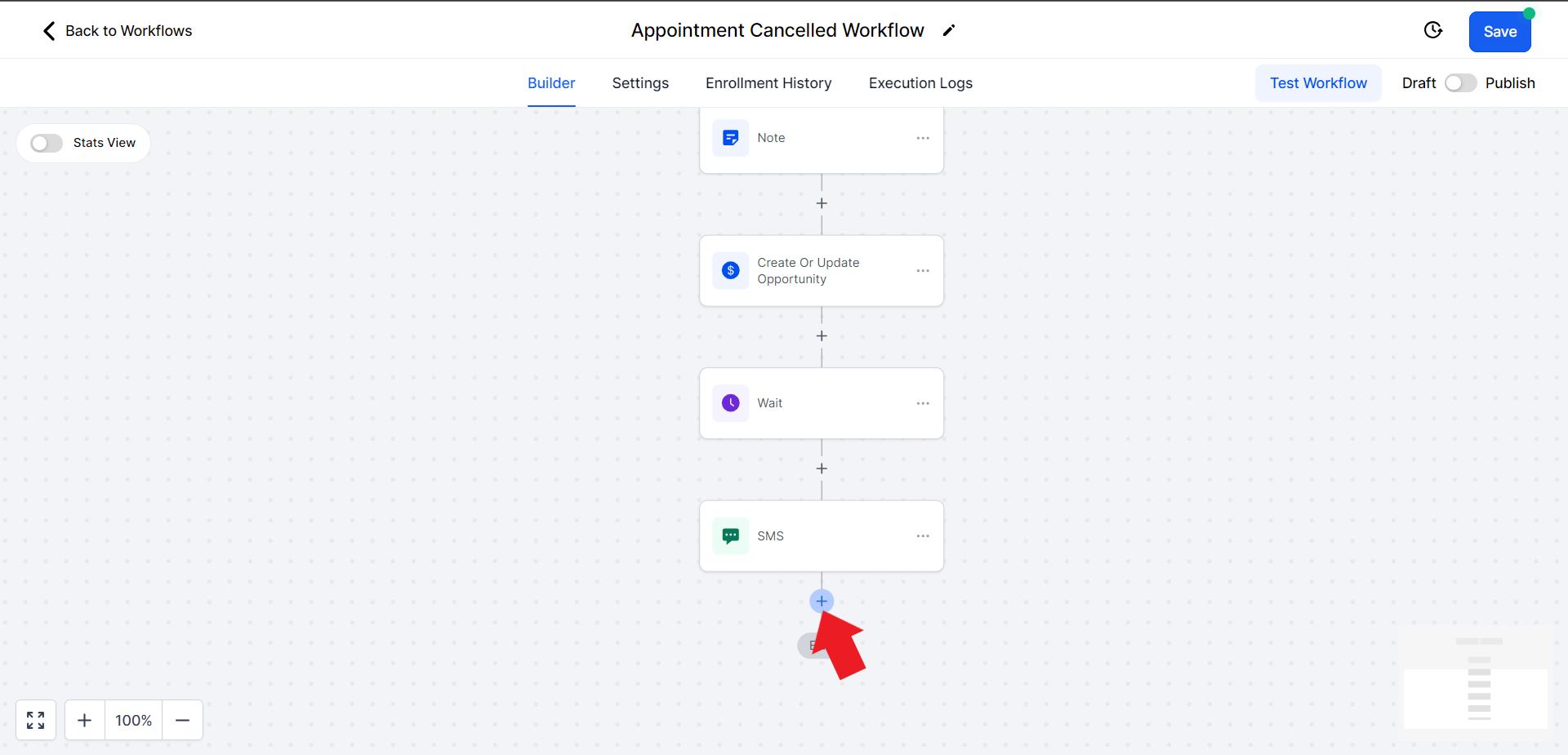 - Click on the "Select Pipeline Stage" field and from the drop-down menu choose the "Appointment Cancelled" option.