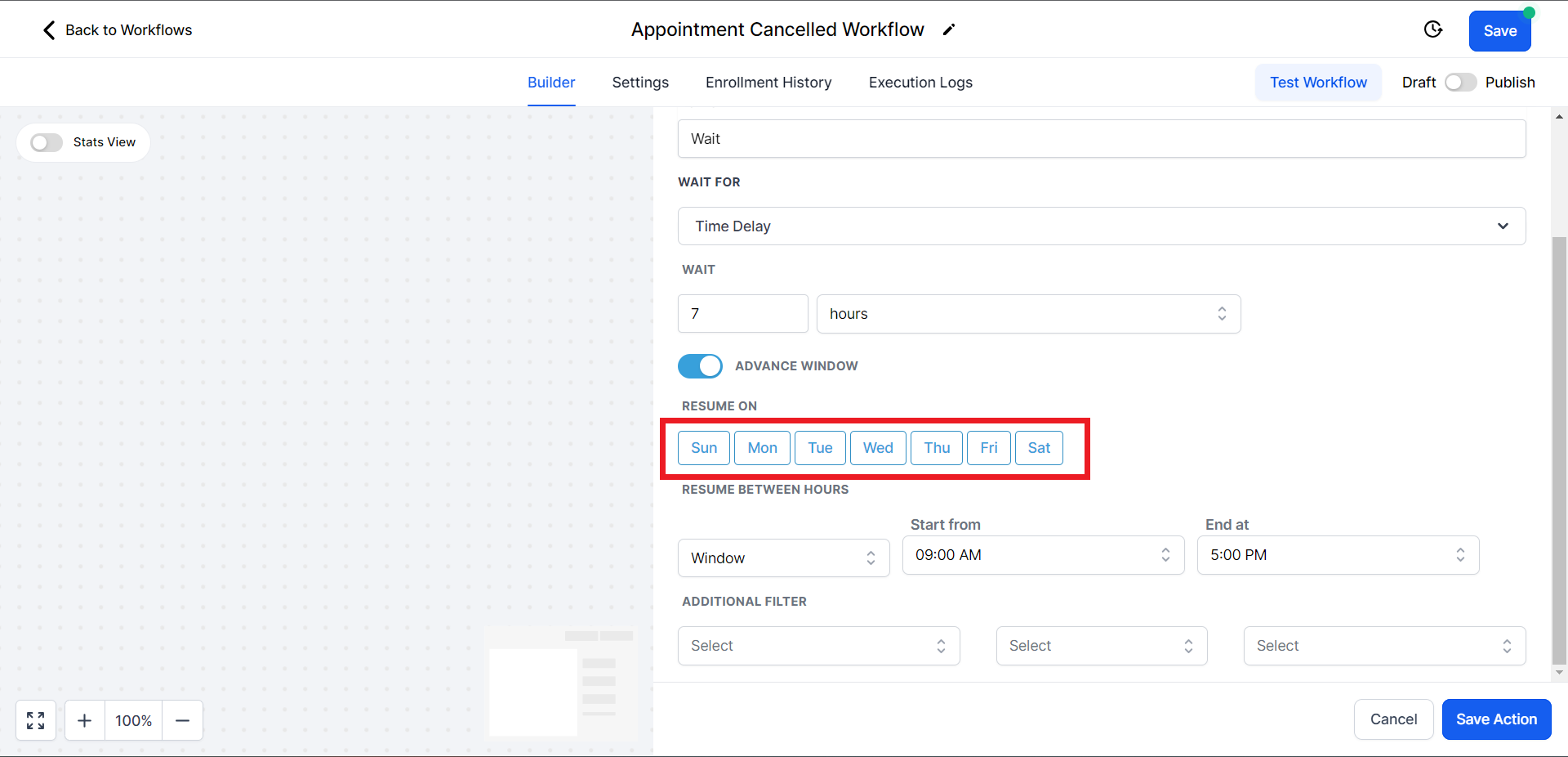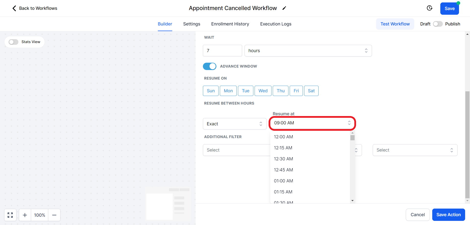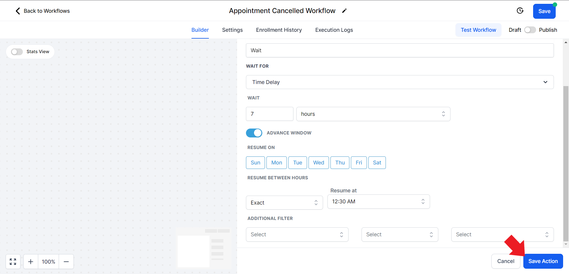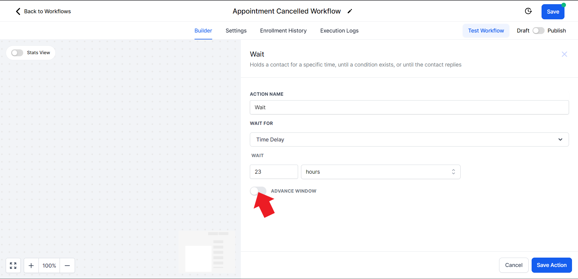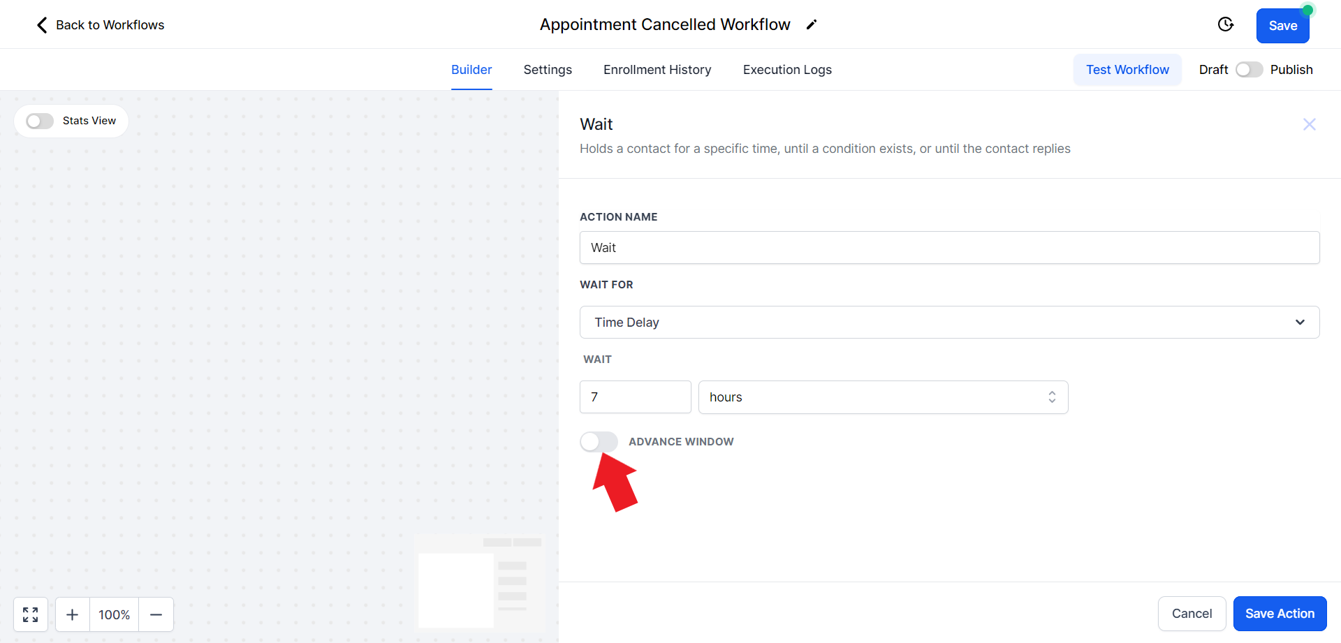 - Click on the "Select Pipeline Stage" field and from the drop-down menu choose the "Appointment Cancelled" option.