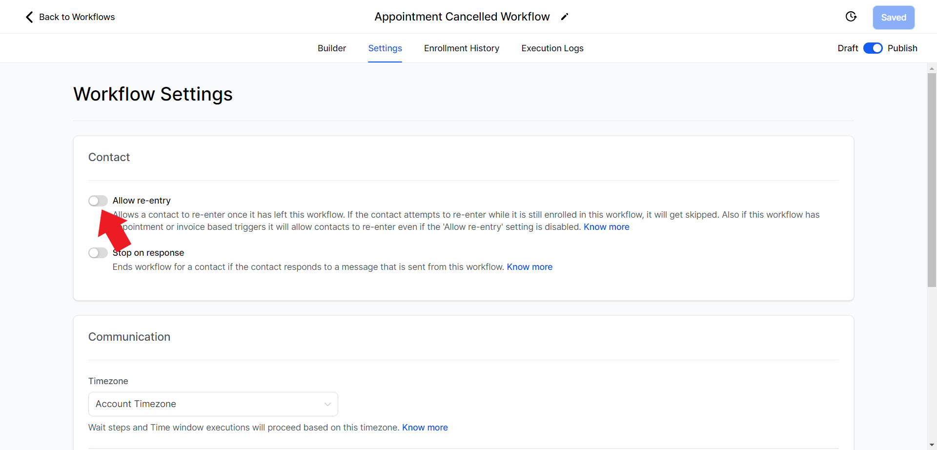 - Toggle the "Allow re-entry" option to turn it ON.