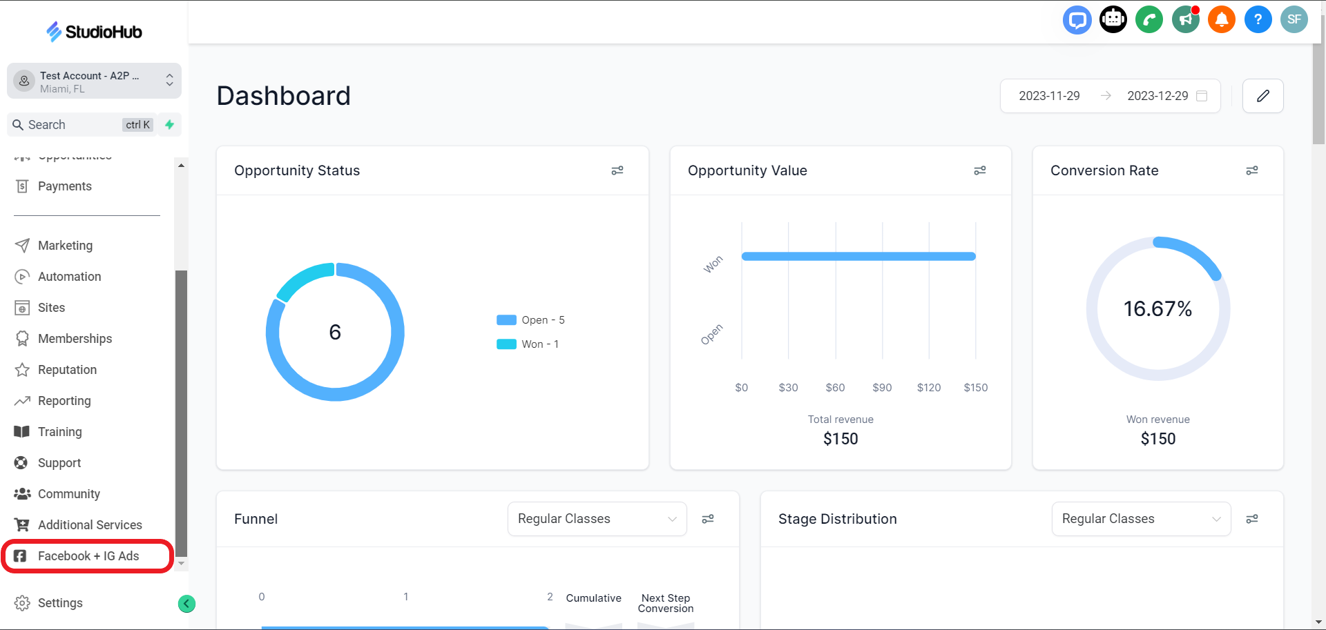 - In the left-hand menu on StudioHub, locate and click on "Facebook + IG Ads".