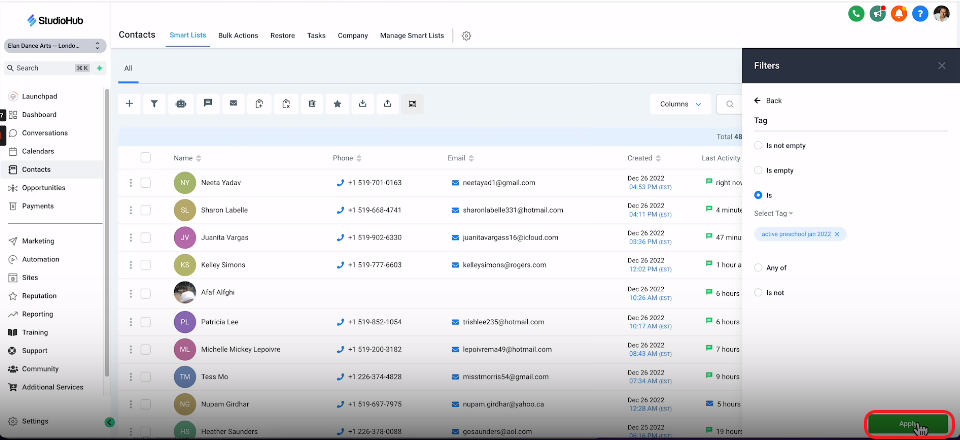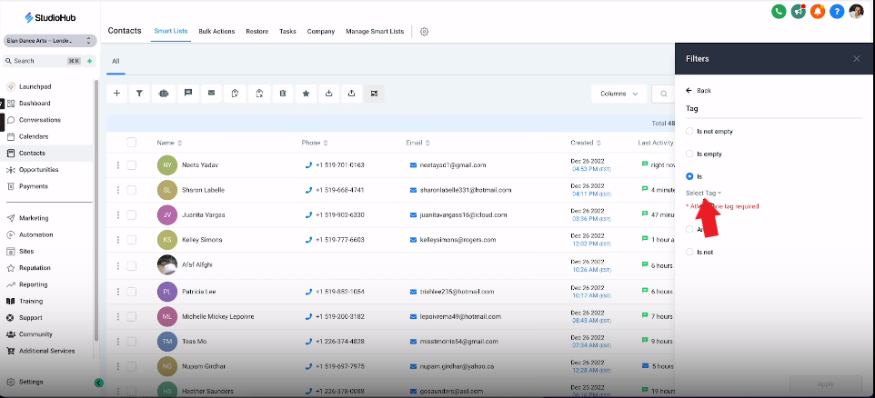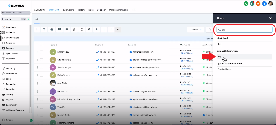 - After importing, make sure to tag your current students appropriately for easy identification. Use this guide here to learn more about tagging your contacts on StudioHub.