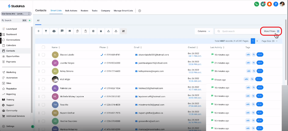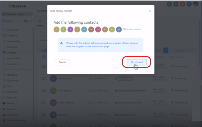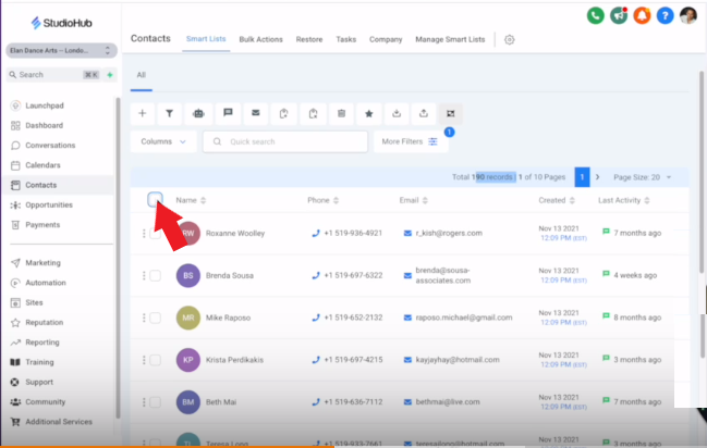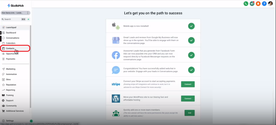 - Navigate to the Contacts section within StudioHub