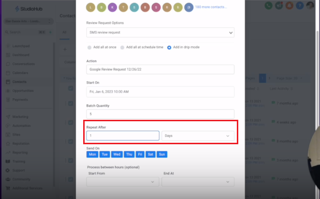 - Set the "Repeat After" option to 1 day to continue the campaign