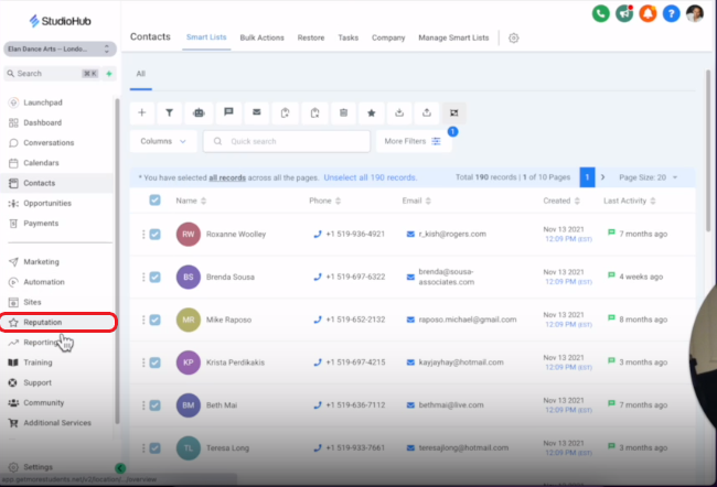 - Click on the "Reputation" section on the StudioHub menu on the left
