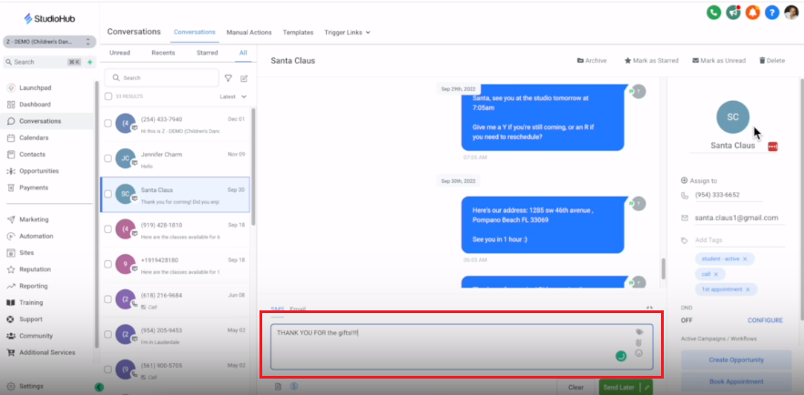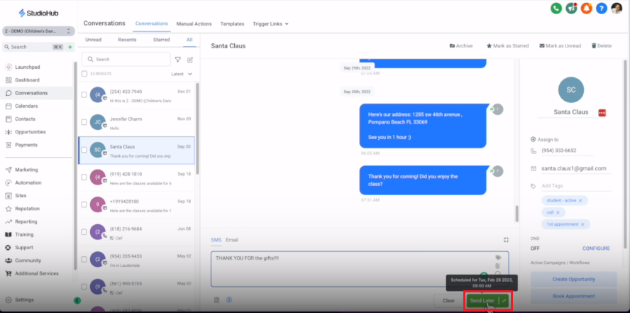 Sending timely event reminders can be a crucial aspect of keeping your audience engaged and informed. StudioHub offers a handy feature that allows you to schedule text messages for future dates. Whether you need to send event reminders, follow-ups, or payment prompts, this feature can help you automate your communication. In this guide, we'll walk you through the steps to schedule text messages for future event reminders in StudioHub.