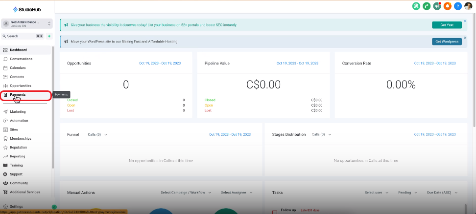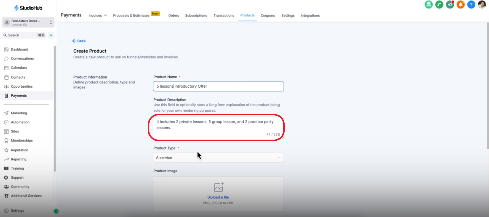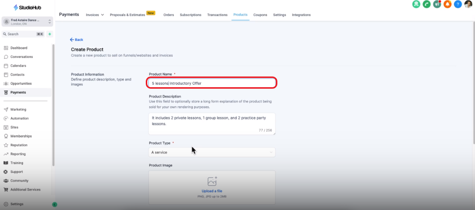 - Before creating your product, ensure your Stripe account is integrated with Studio Hub. If it's not integrated, head to the "Payments" section
