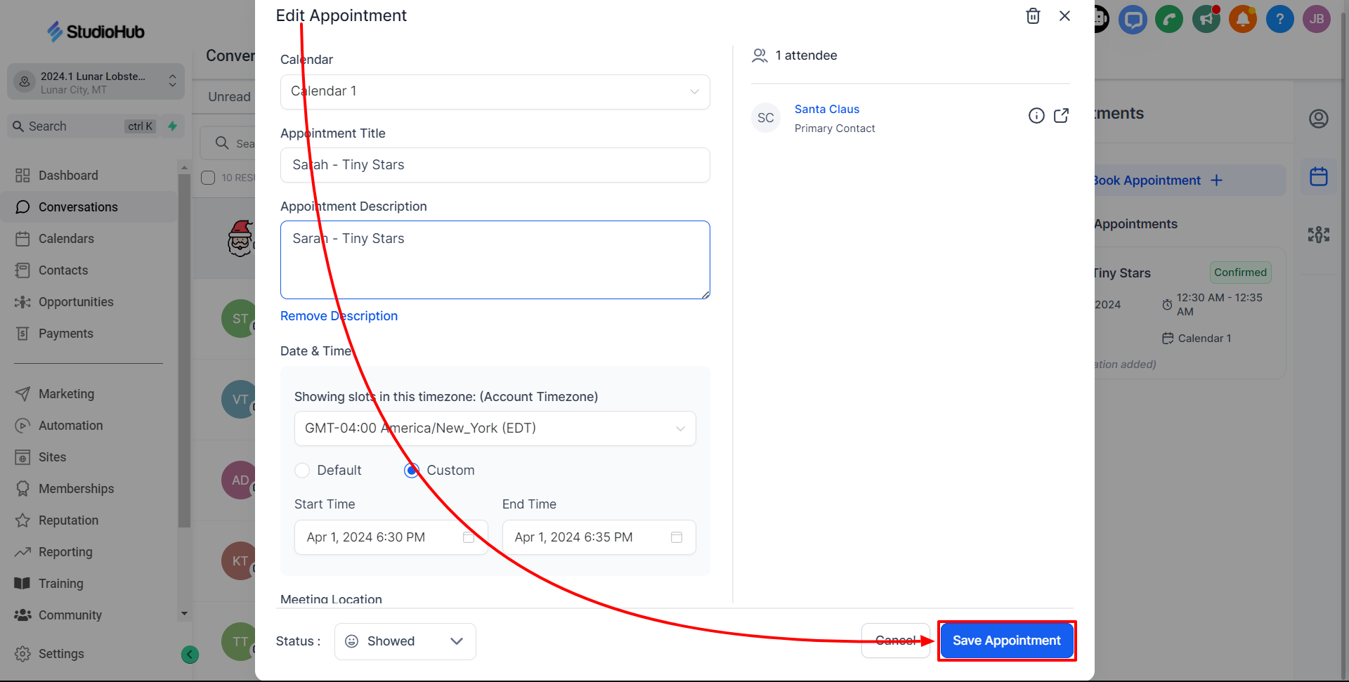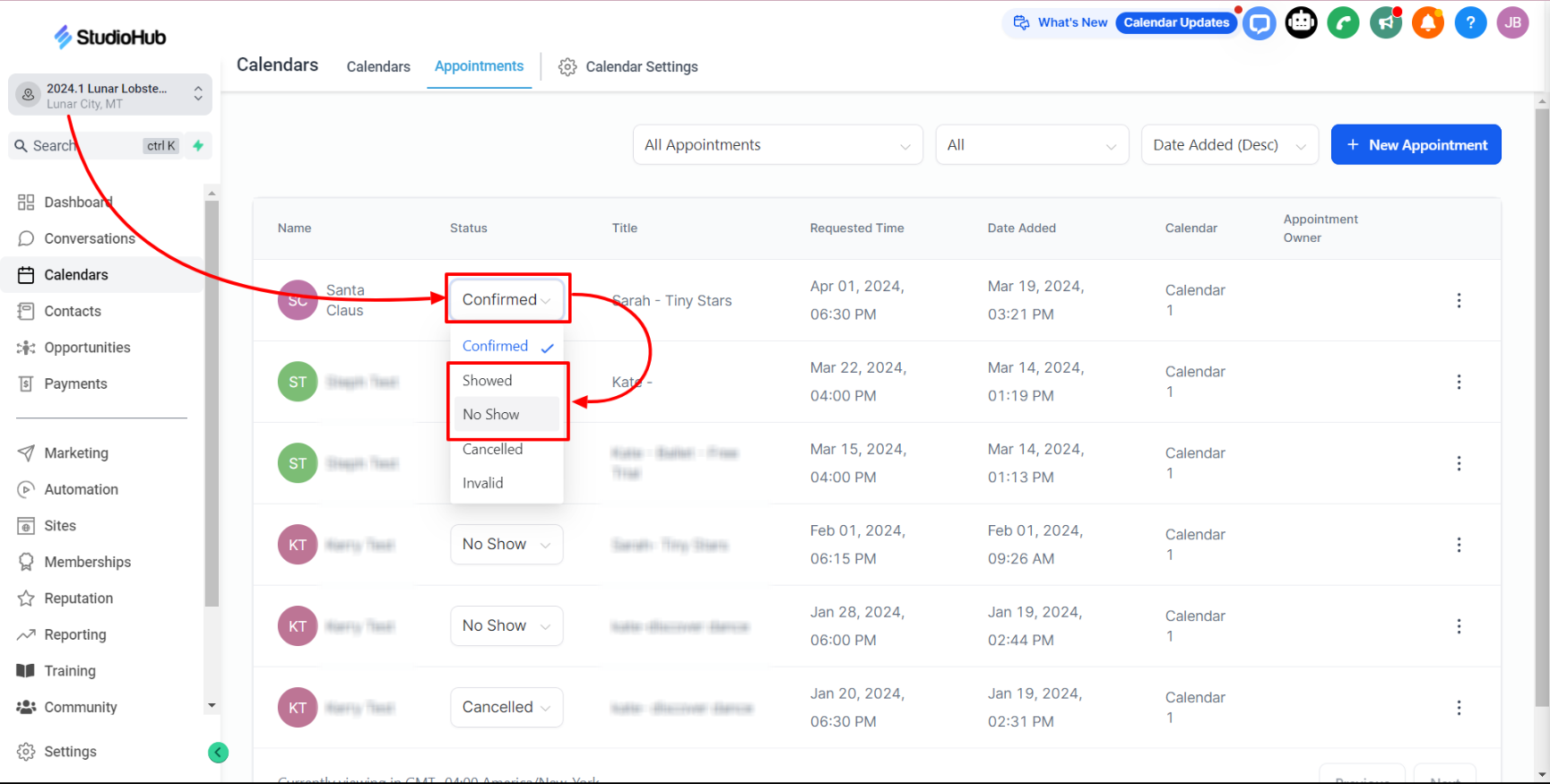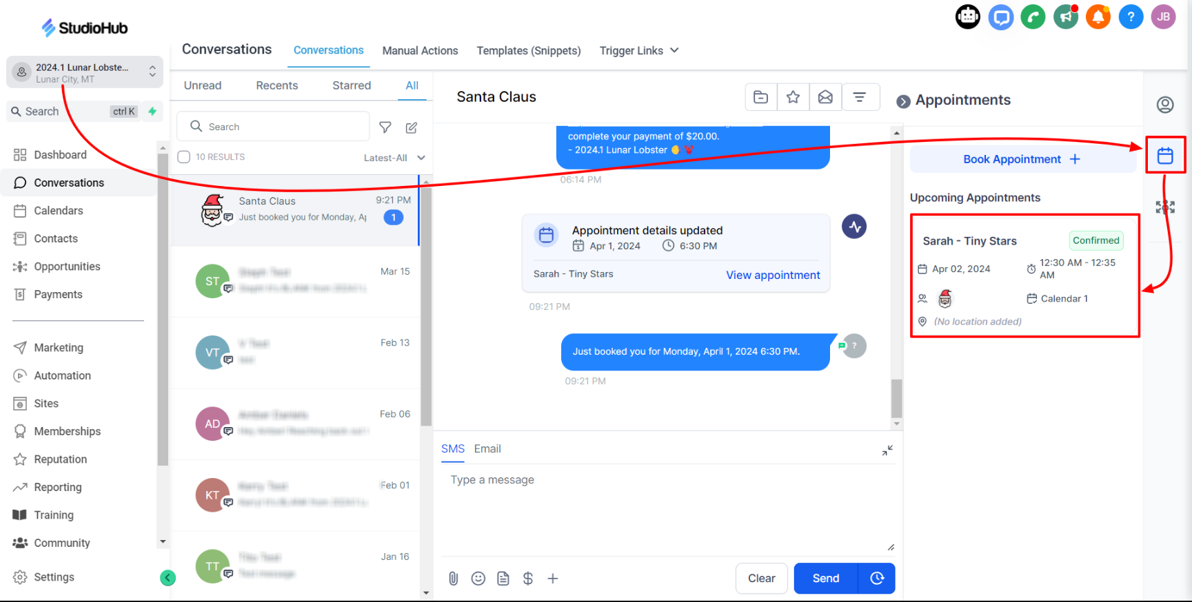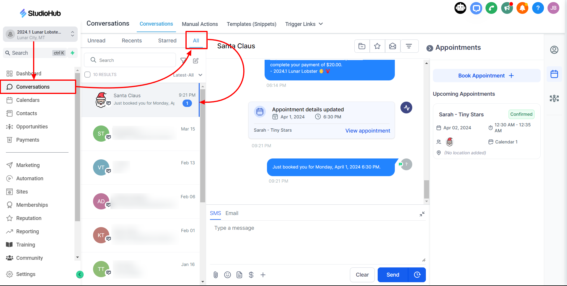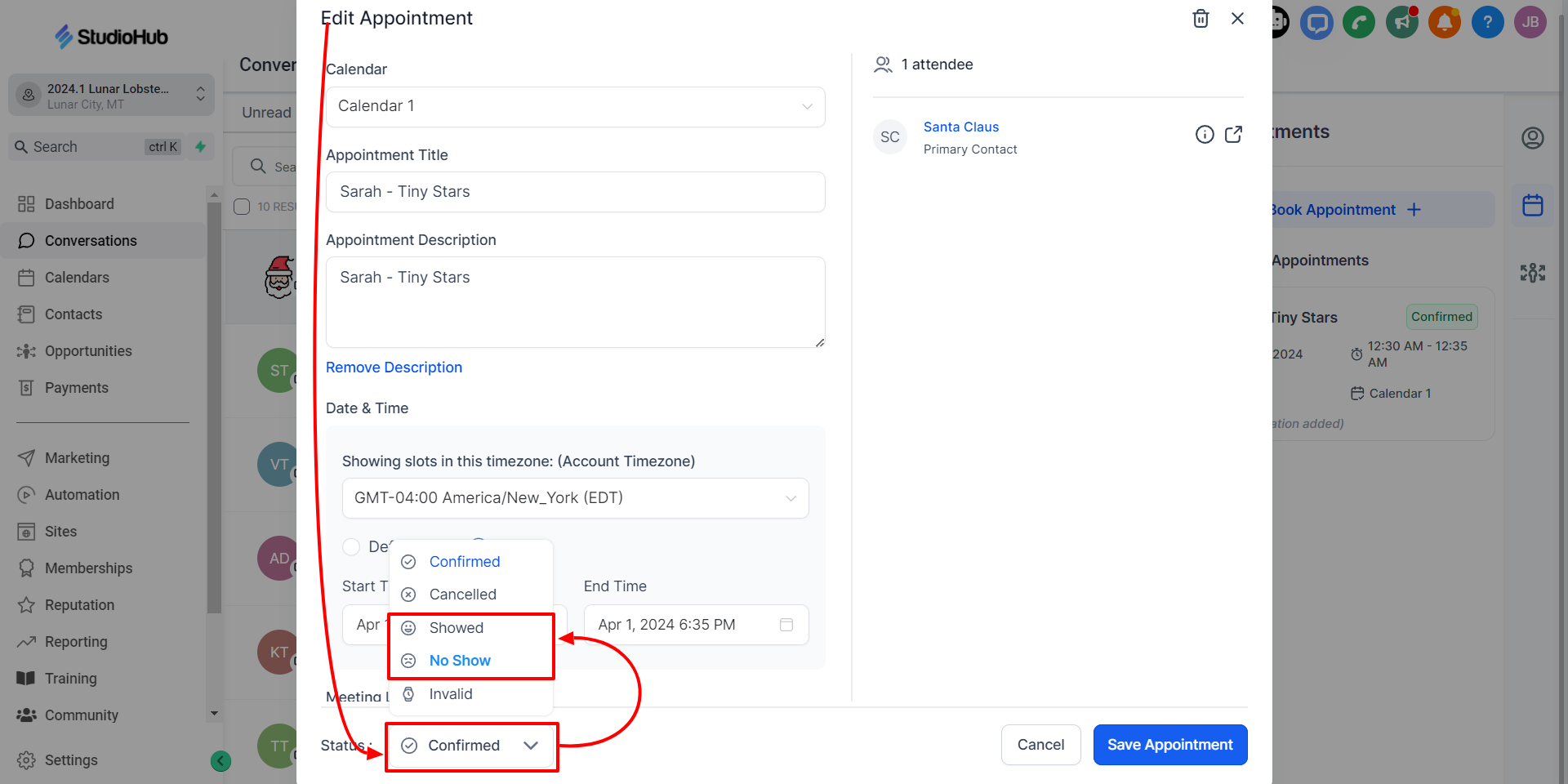 - Select the person that you want to mark as 'Showed' or 'No-show' from the conversations list