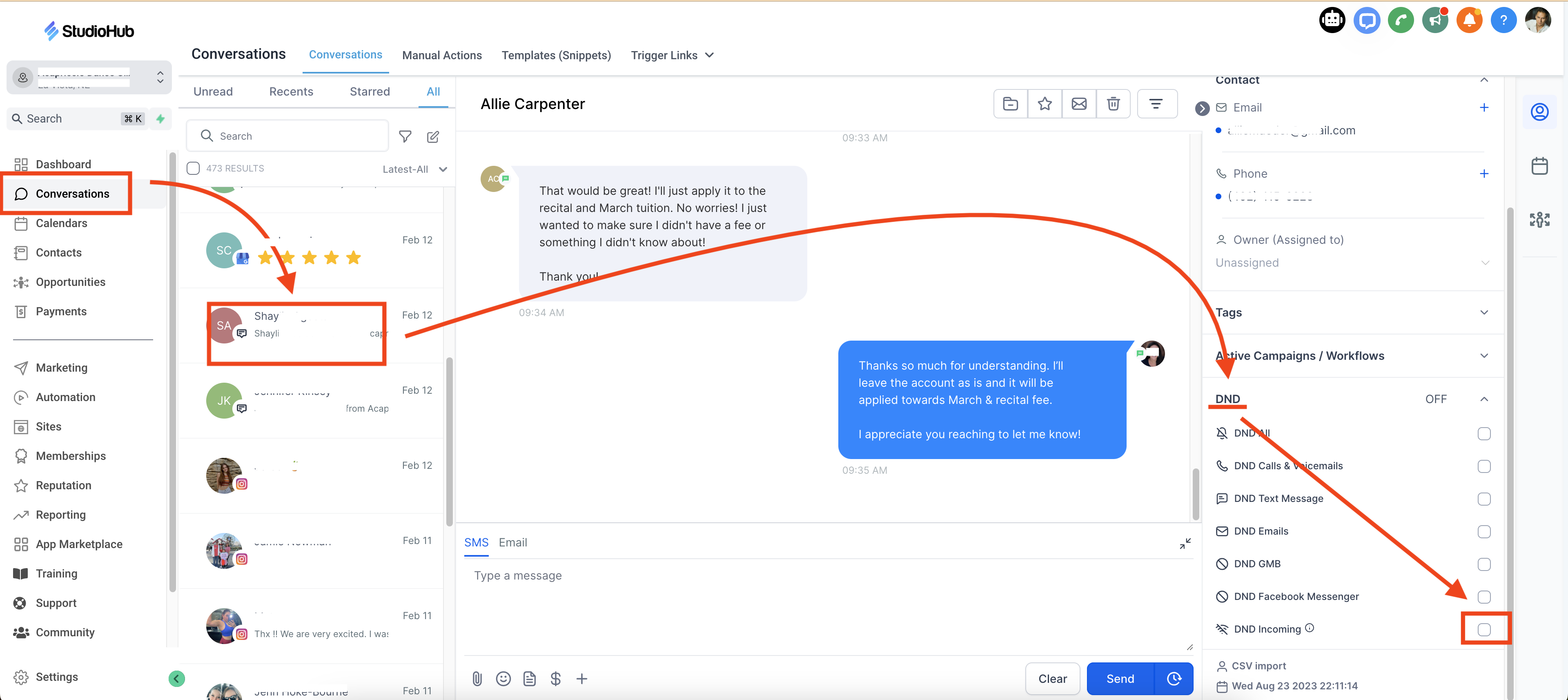 Here's how to block a contact in StudioHub