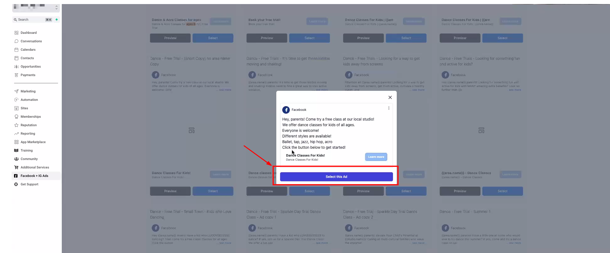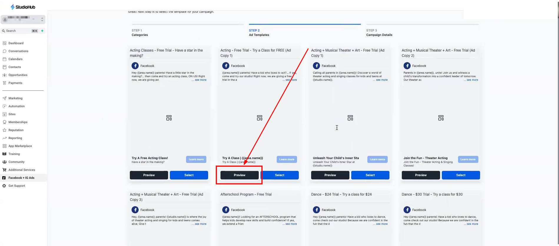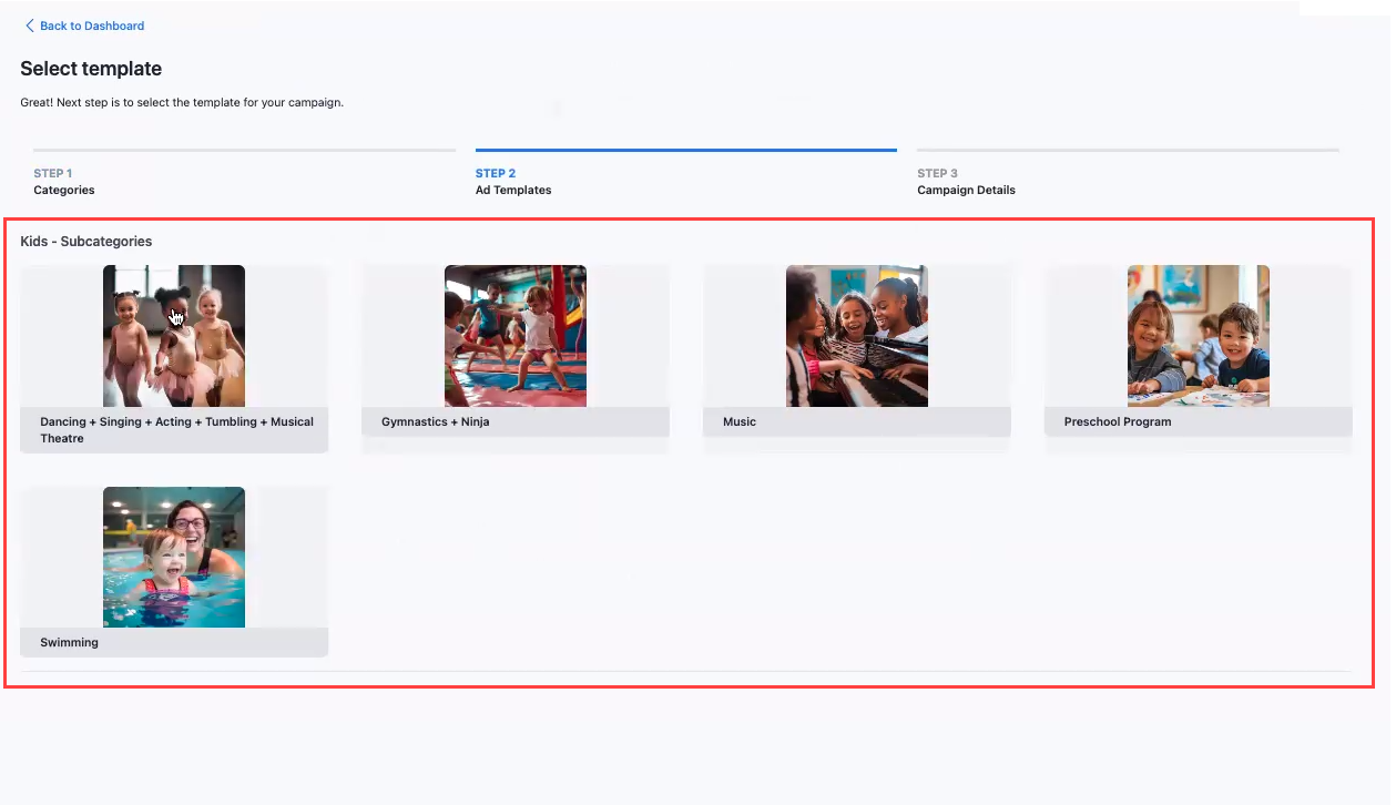 In this section, you will be picking an Ad template that matches the program you are trying to promote. Think of Ad templates as a pre-made ad copy.