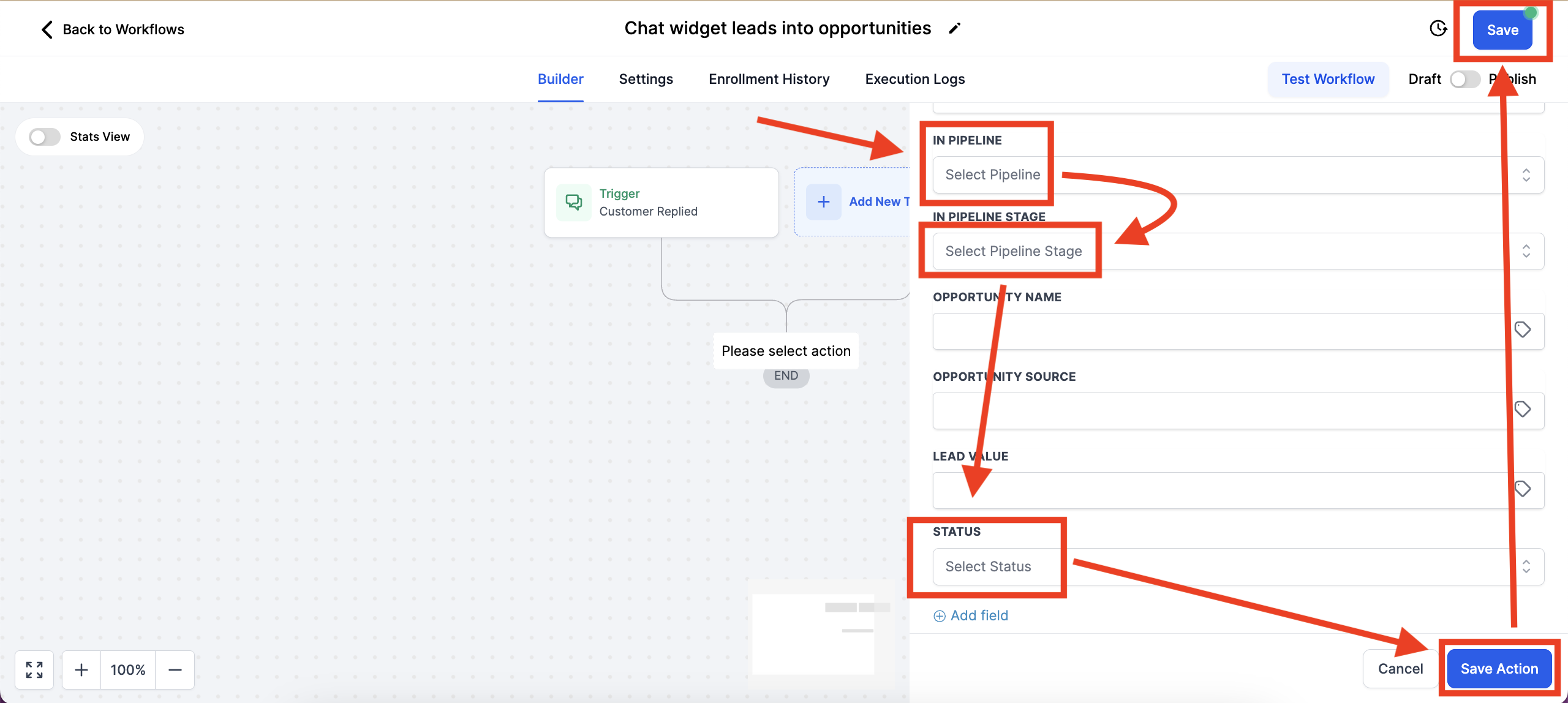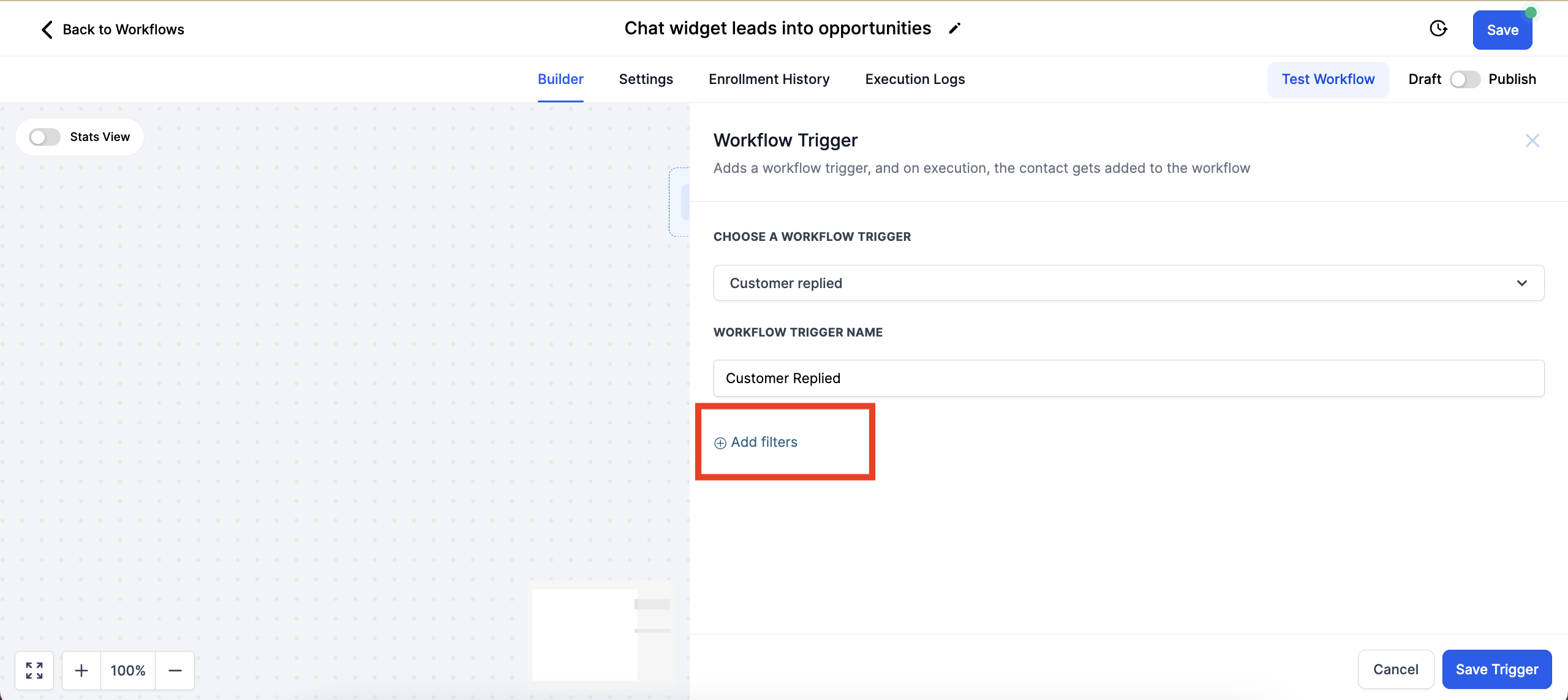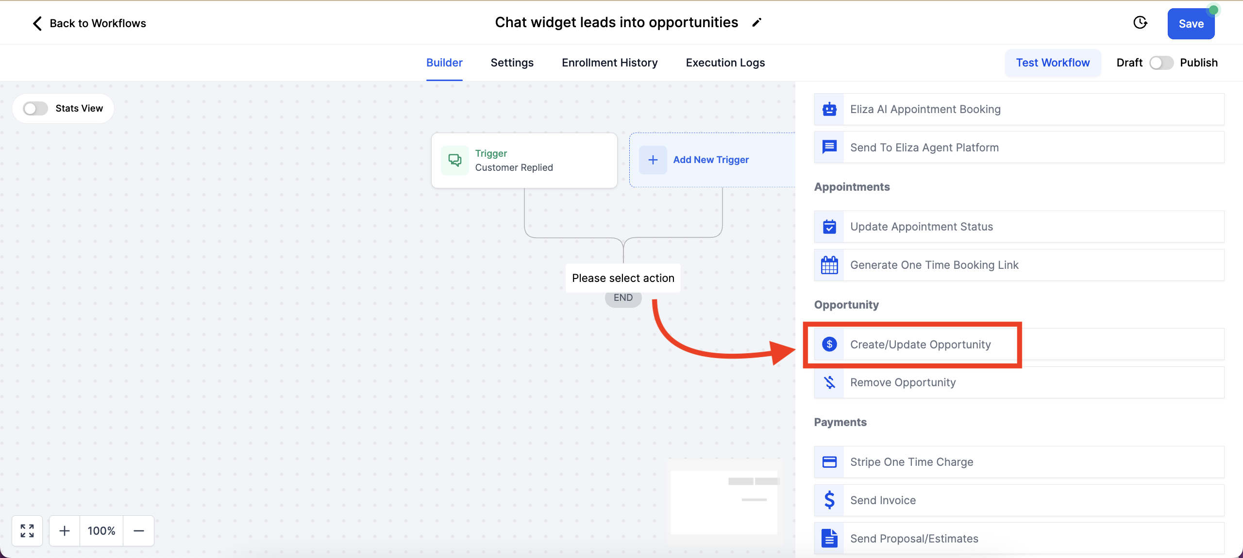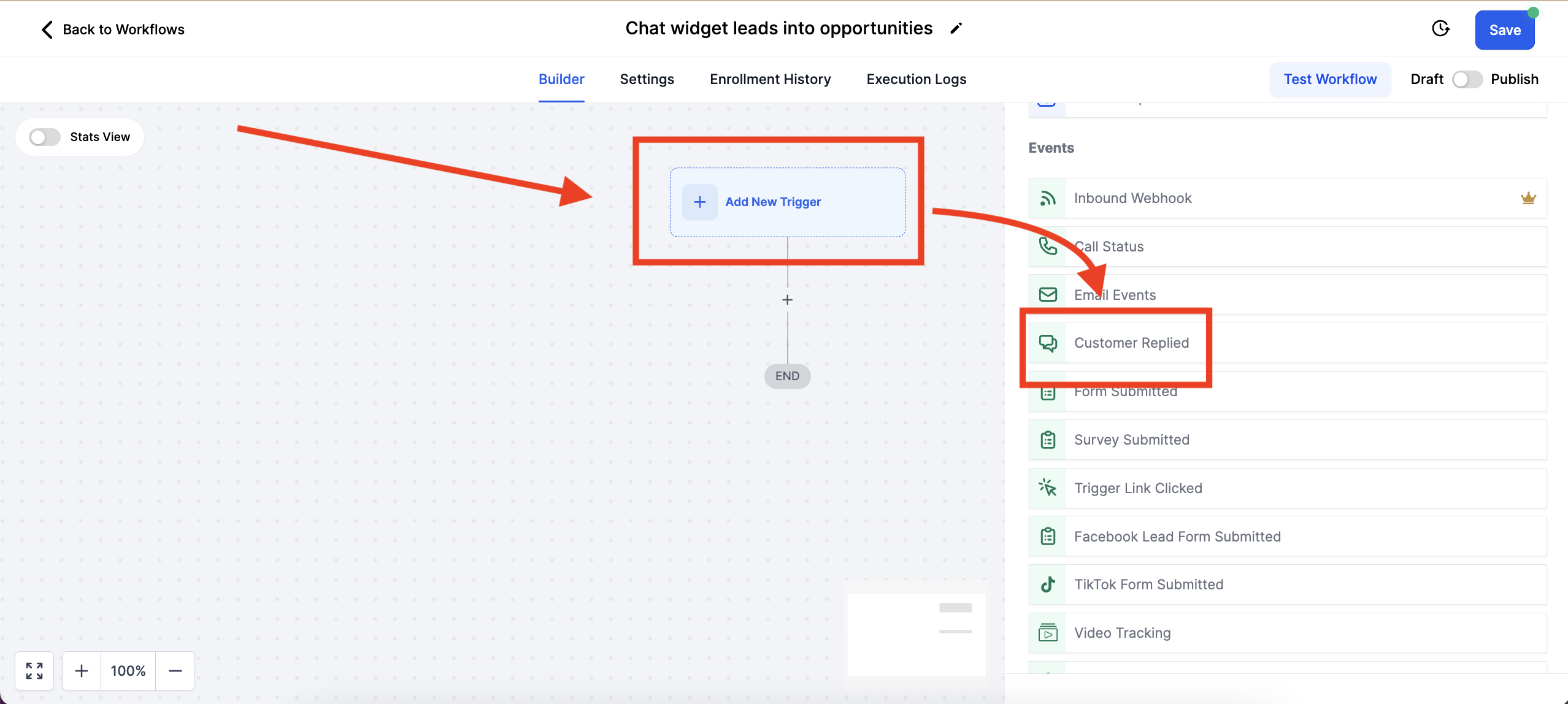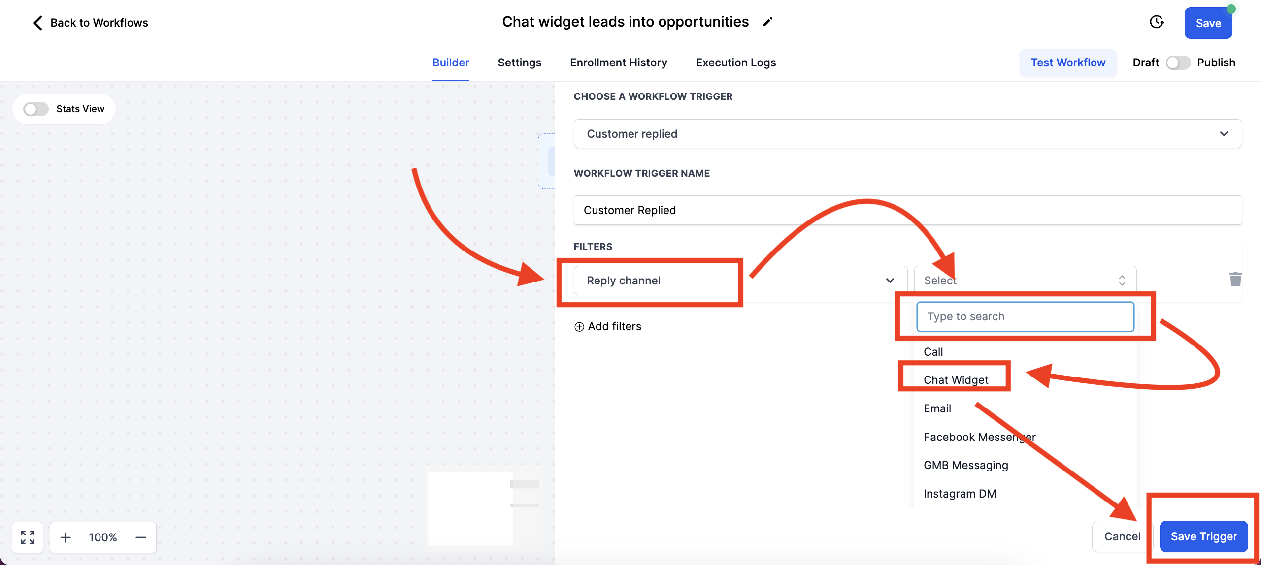 Here's how to create a workflow to turn Chat Widget leads into opportunities