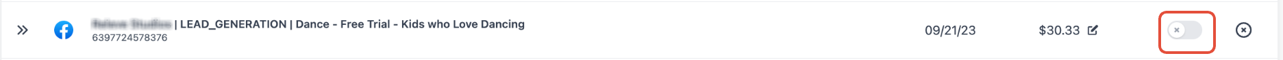 - Click on the three dots next to the campaign you wish to turn off