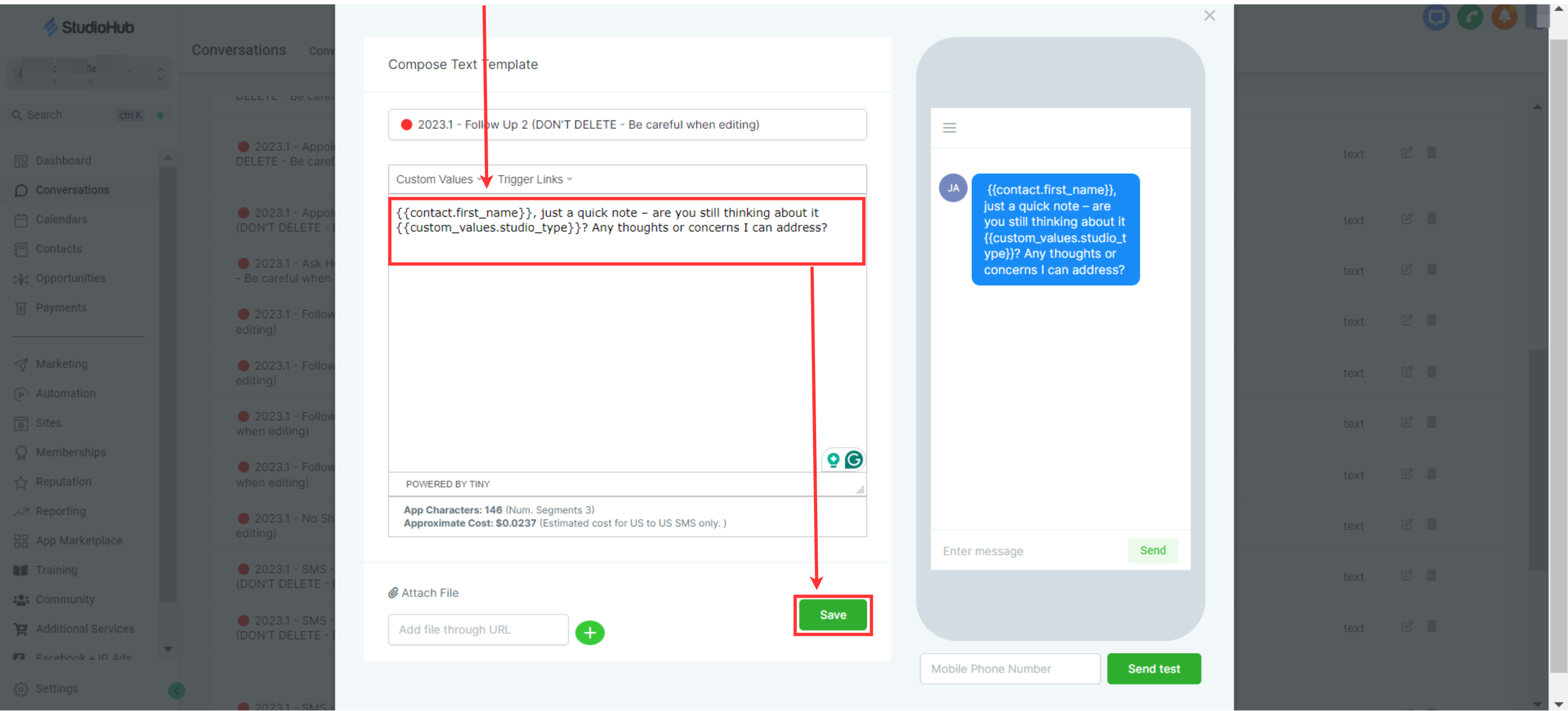 Disclaimer: Do not delete any custom value. For example: {{contact.first_name}}.- Click on Save.
