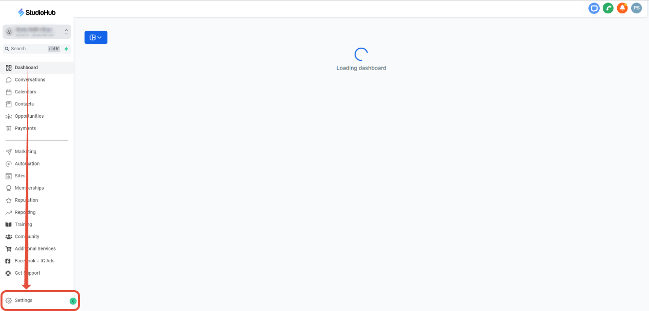 - In StudioHub, click on Settings in the left.